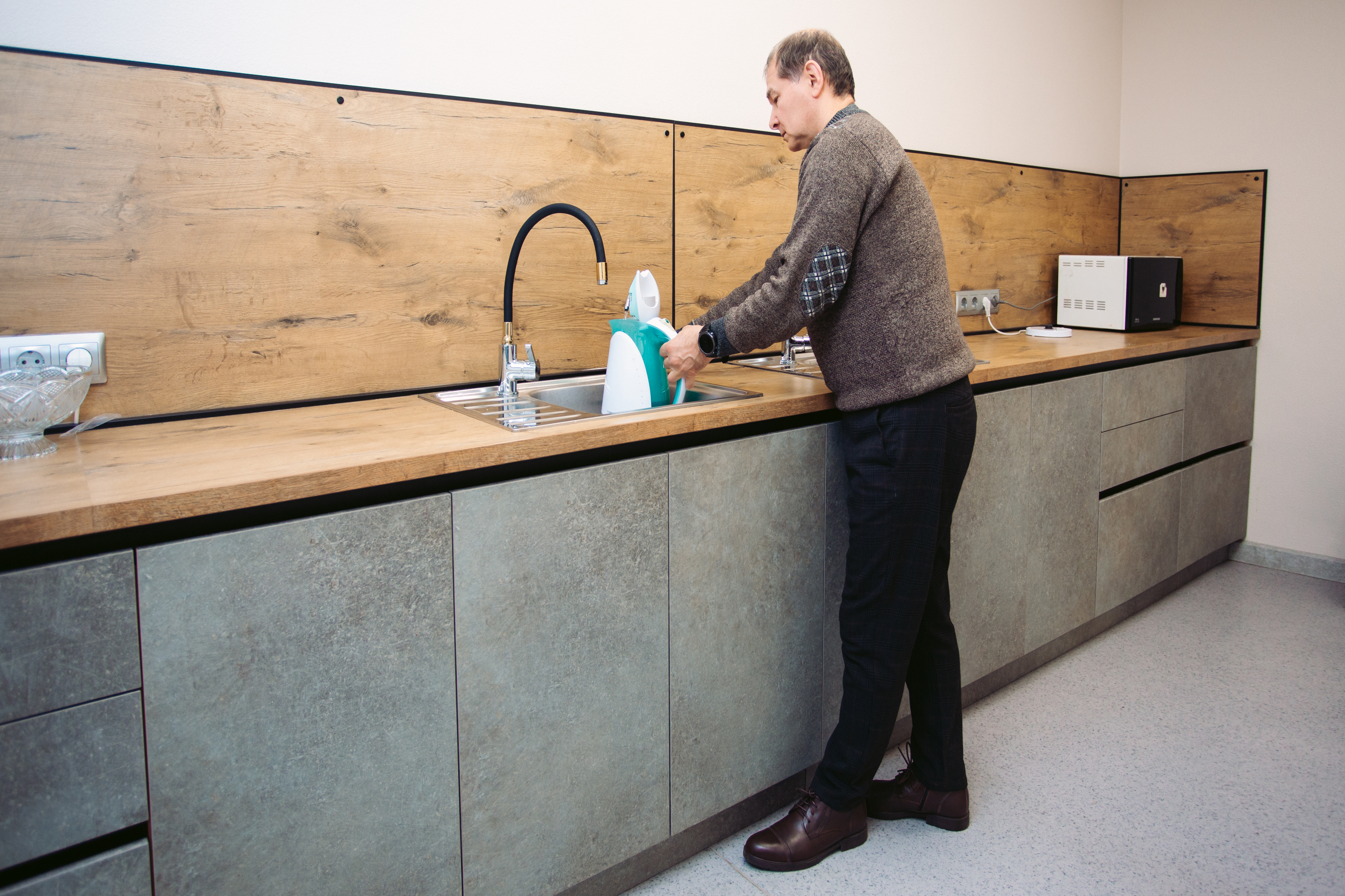 Компания «Водоробот» запустила эффективный водно-питьевой режим для сотрудников, начав с небольшого проекта. Изначально был организован общий питьевой режим: специалисты смонтировали стойку для налива воды, чтобы рабочие могли наполнять бутыли для всего производства. Это обеспечило базовый доступ к чистой воде. На заводе убедились в удобстве простых и понятных решений «Водоробота», оценили ответственный подход и продолжили работы над организацией питьевого режима и в административном комплексе.