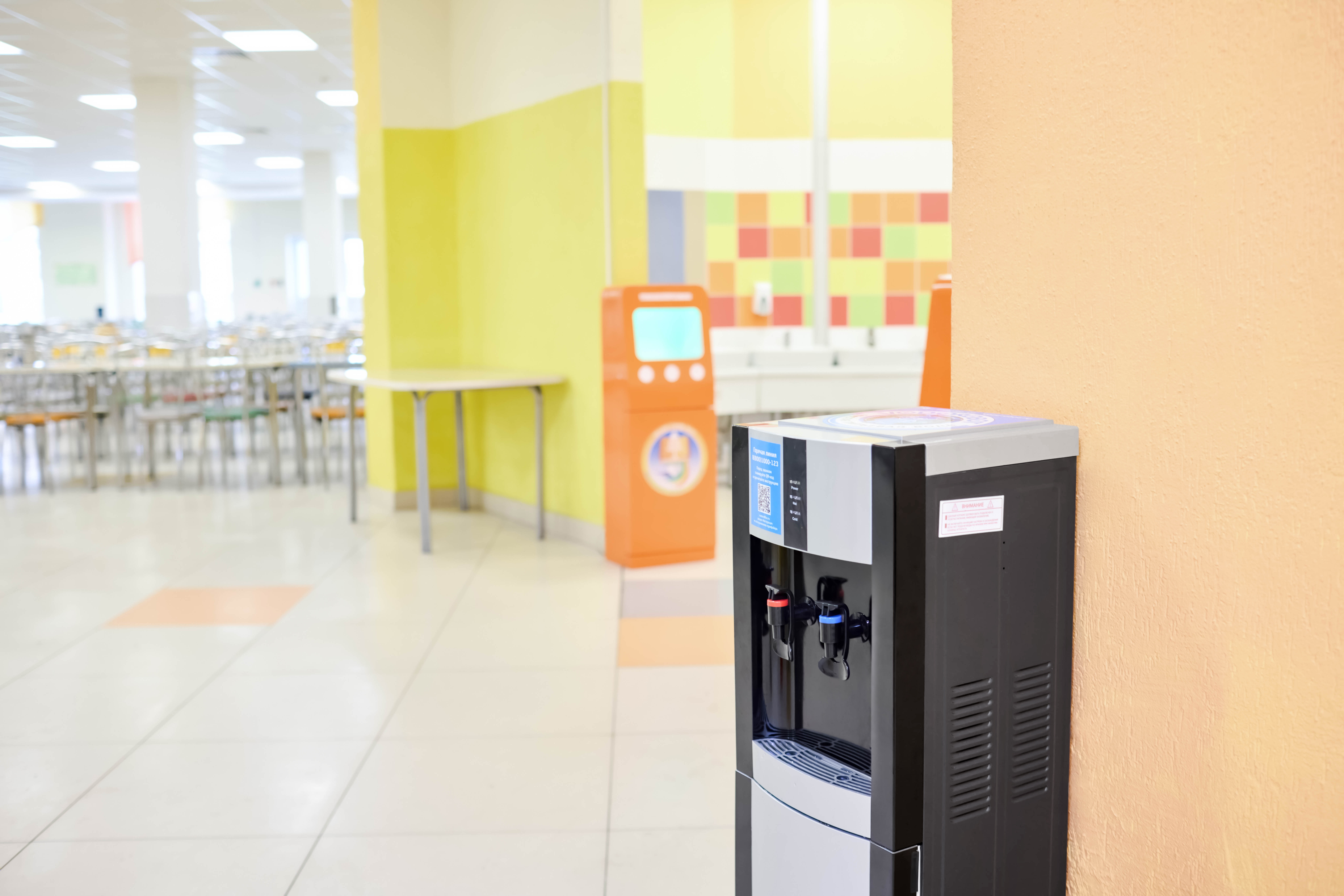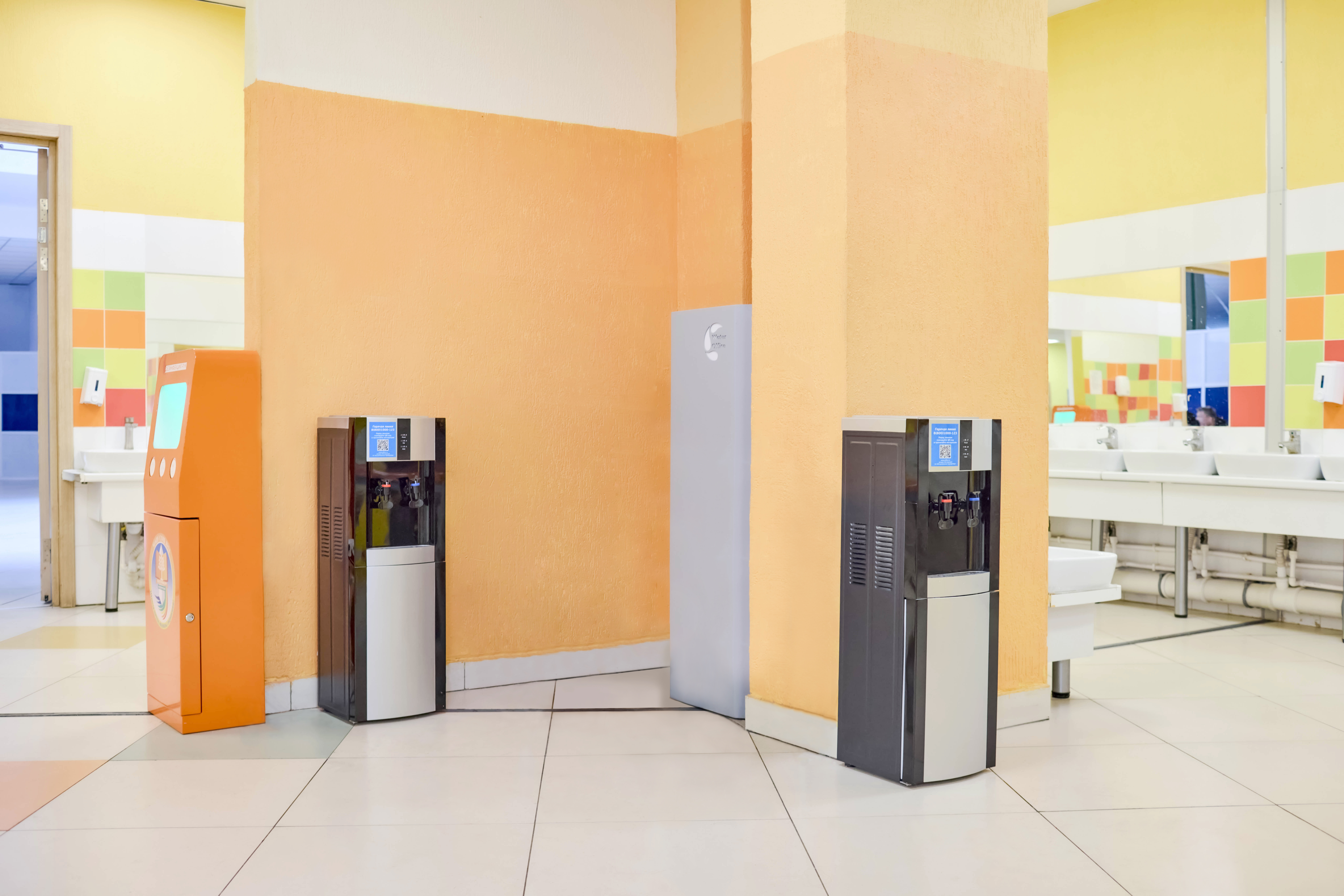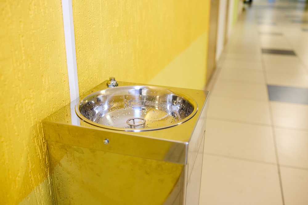 В столовых установлены пурифайеры, и комбинат питания заботится о наличии чистых стаканов к каждой перемене. Вода подается комнатной температуры — без функций охлаждения или подогрева, чтобы исключить риски для учащихся. Питьевые фонтанчики размещены в левом и правом крыле обоих корпусов. Качество воды проверяется регулярно путем отбора проб и их сдачи на анализ в аккредитованную лабораторию.