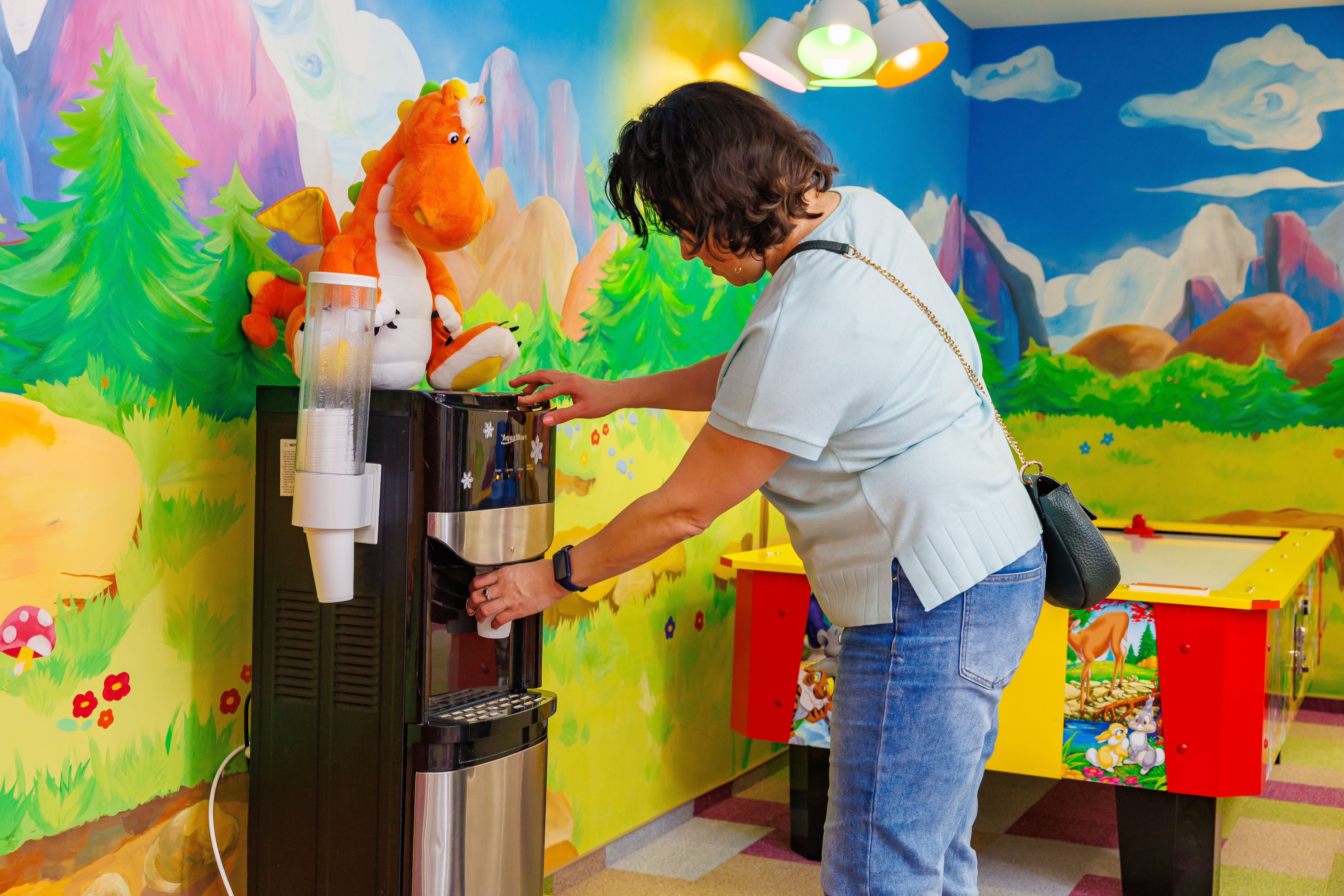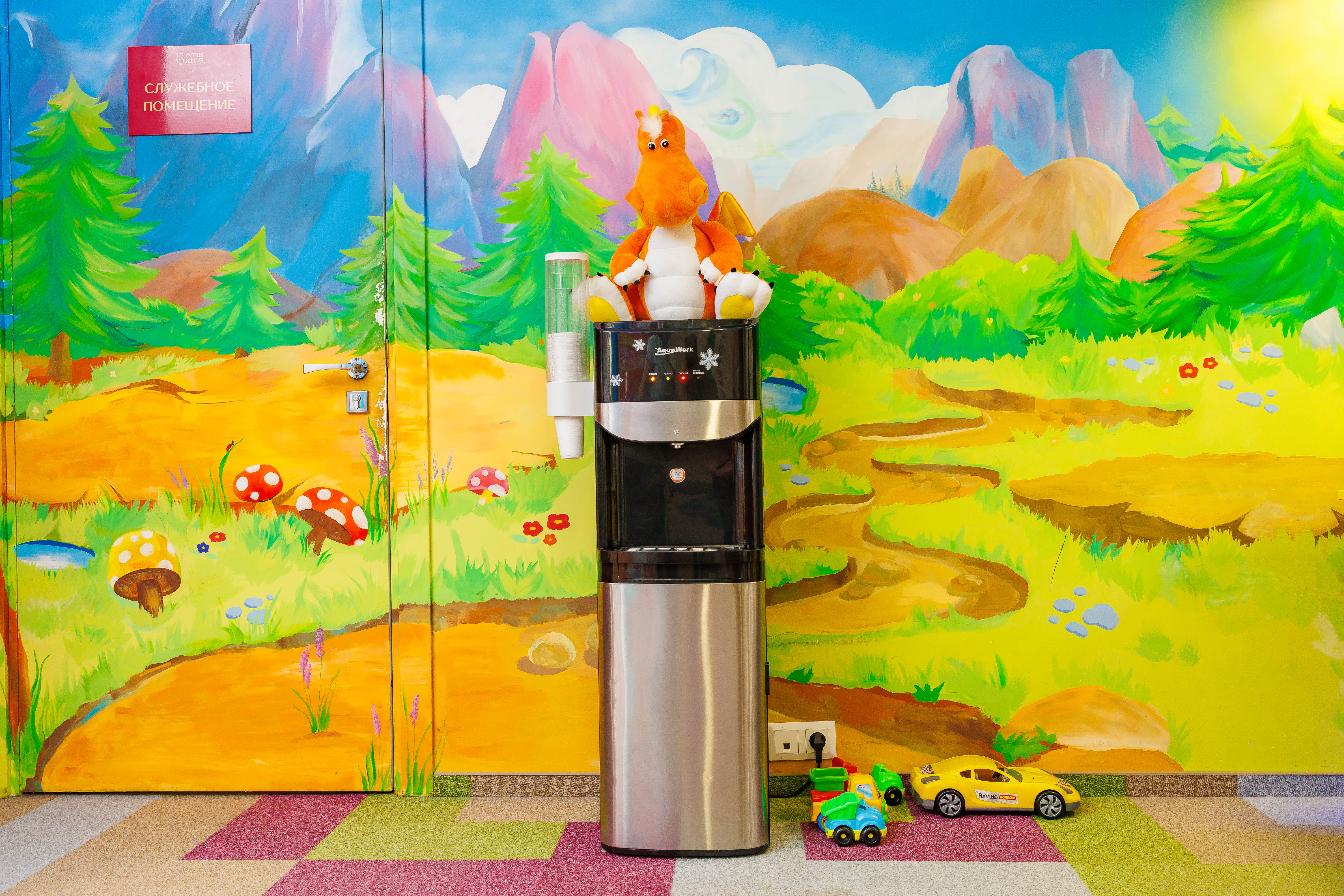 В детской стоматологии АTIS KIDS пурифайеры установлены в клиентской зоне и комнате отдыха персонала. Малыши и мамы в ожидании приема или после него могут попить водички, поиграть в настольный хоккей или еще в миллион игр, которые предлагает клиника, чтобы превратить поход к врачу в праздник. Детская стоматология АTIS KIDS